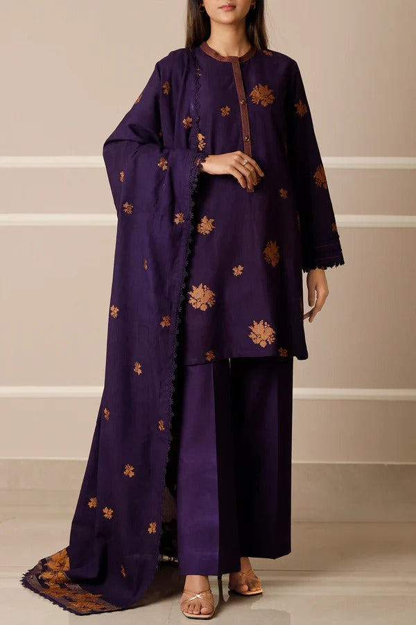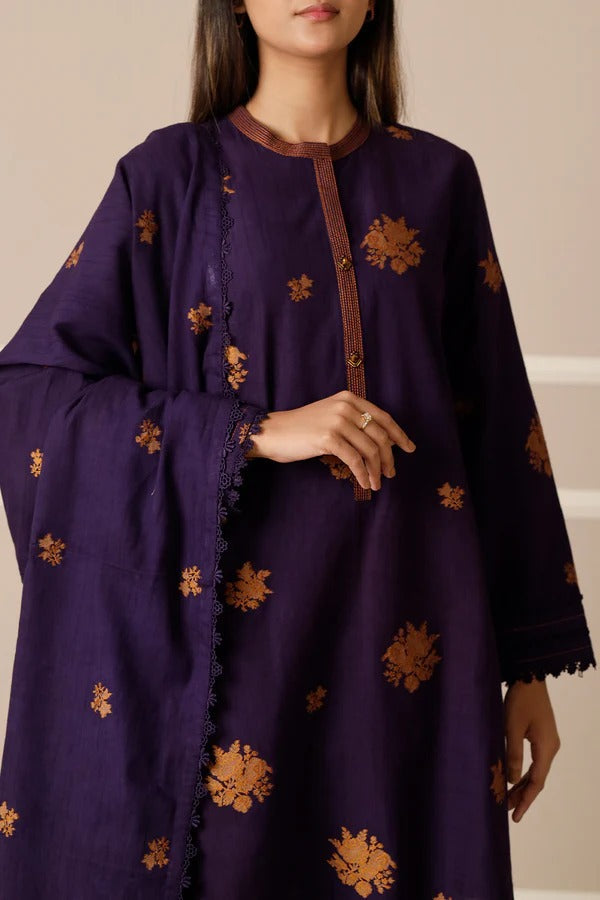 Shine in elegance with the Saya Deep Royal Blue Jacquard 3-Piece Suit. Featuring intricate golden motifs, a matching jacquard dupatta, and soft cambric trousers, it offers a perfect blend of comfort and sophistication. Ideal for festive occasions or formal events, it exudes timeless charm.