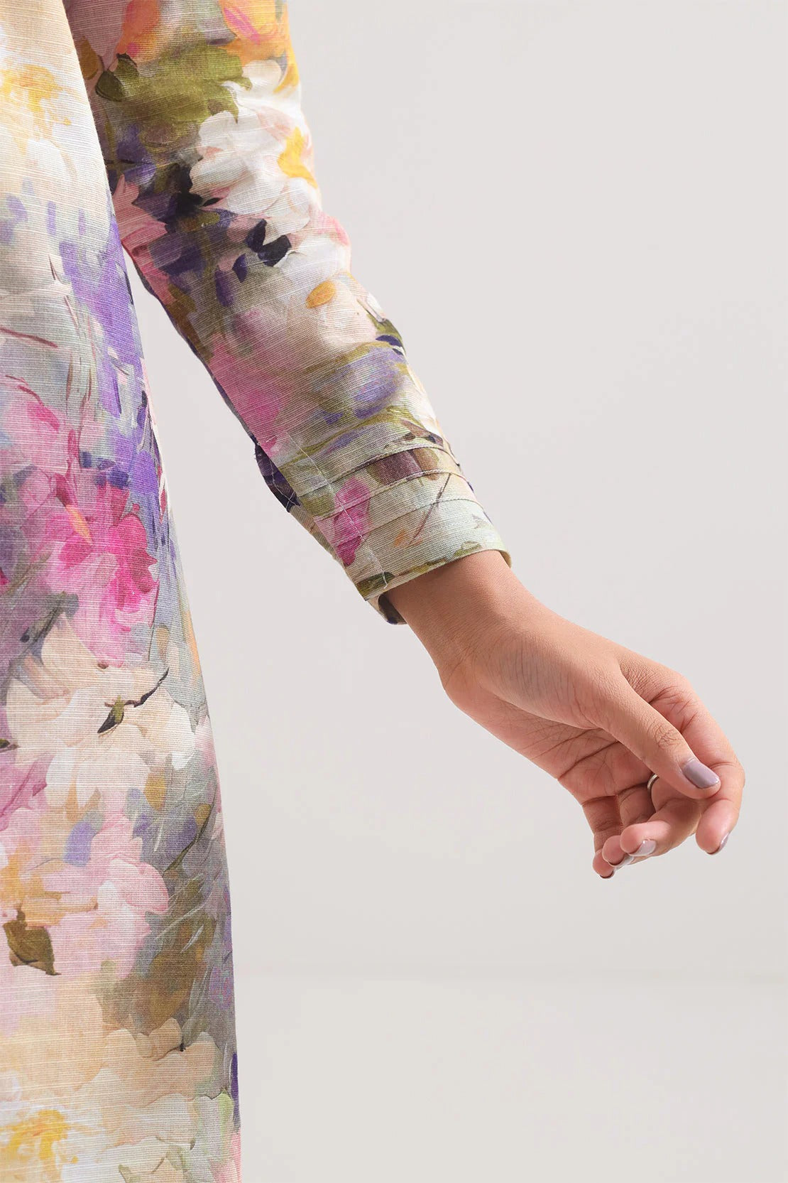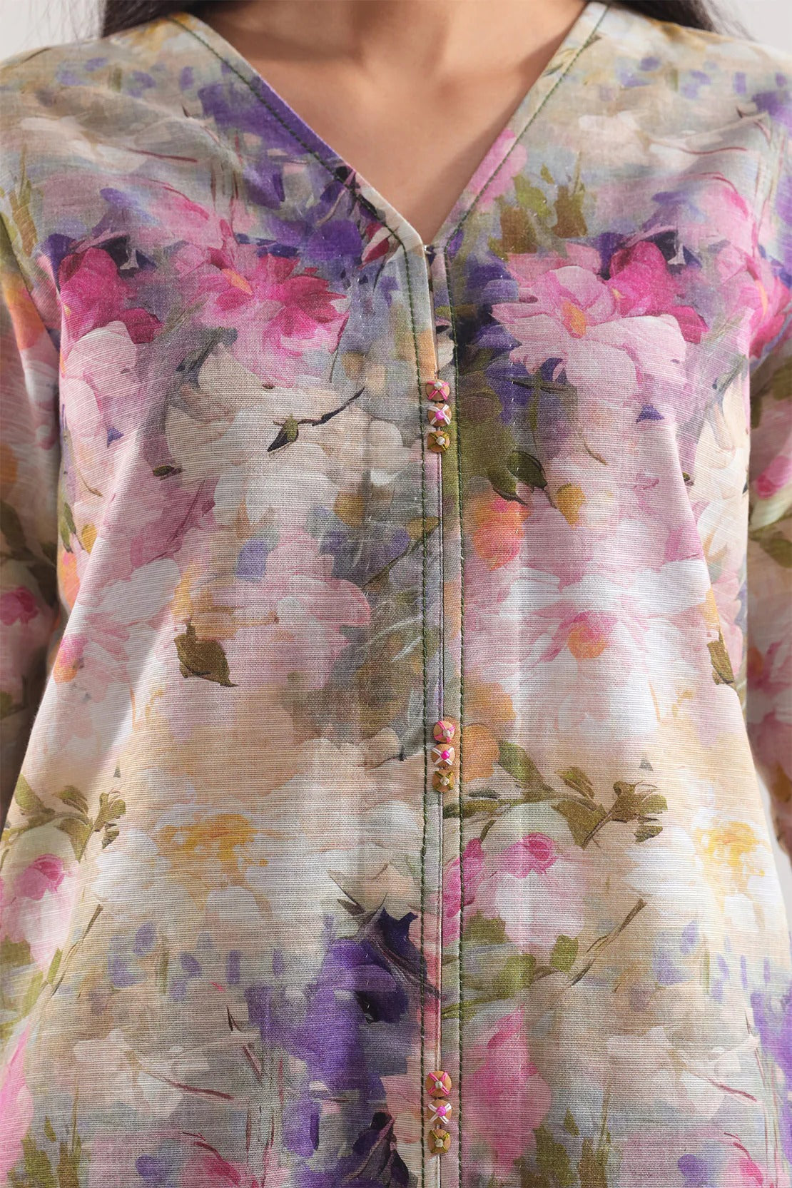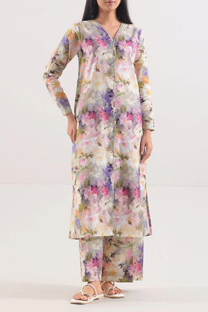 Saya Premium Printed Cotton Khaddar 2-Piece Suit – Soft Pastel Watercolor Long Shirt & Trouser